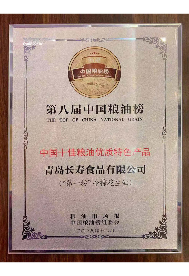 2018年12月 榮獲“中國十佳糧油優(yōu)質(zhì)特色產(chǎn)品”榮譽(yù)稱號(hào)
