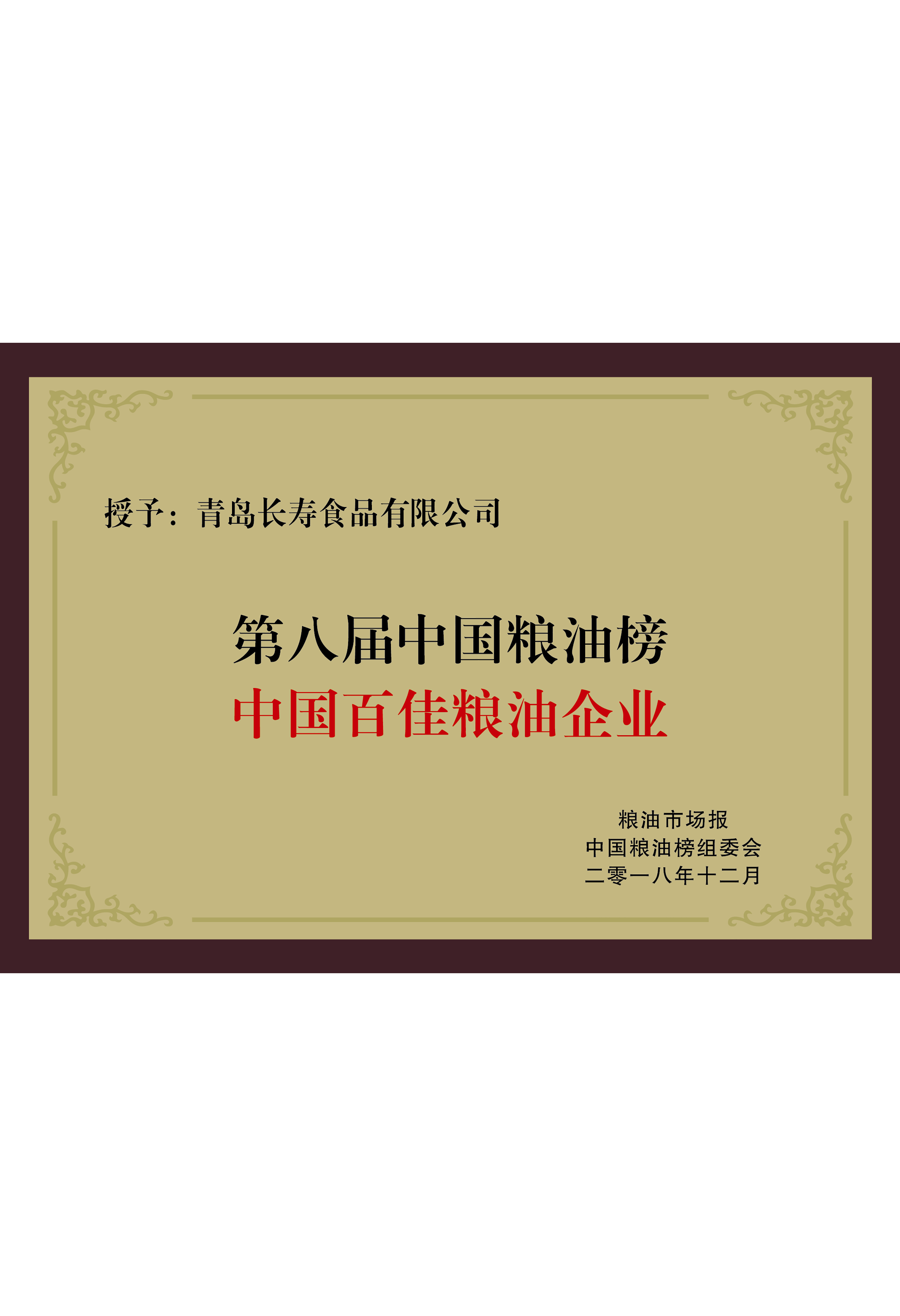 2018年12月 榮獲“中國百佳糧油企業(yè)”稱號(hào)